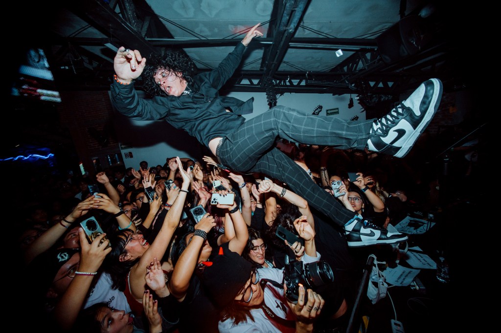 Su entrada a la escena fue resultado de mucho trabajo y sobre todo insistencia. Empezó tomando fotos a amigos, ofreciendo su trabajo sin cobrar y colándose a shows con su cámara. ‘Tomaba fotos y después se las mandaba a las bandas sin cobrar. A veces recibía respuesta y a veces no’, recuerda. Pero justo este proceso fue el que le permitió construir un portafolio y empezar a moverse dentro de la escena local en Puebla.